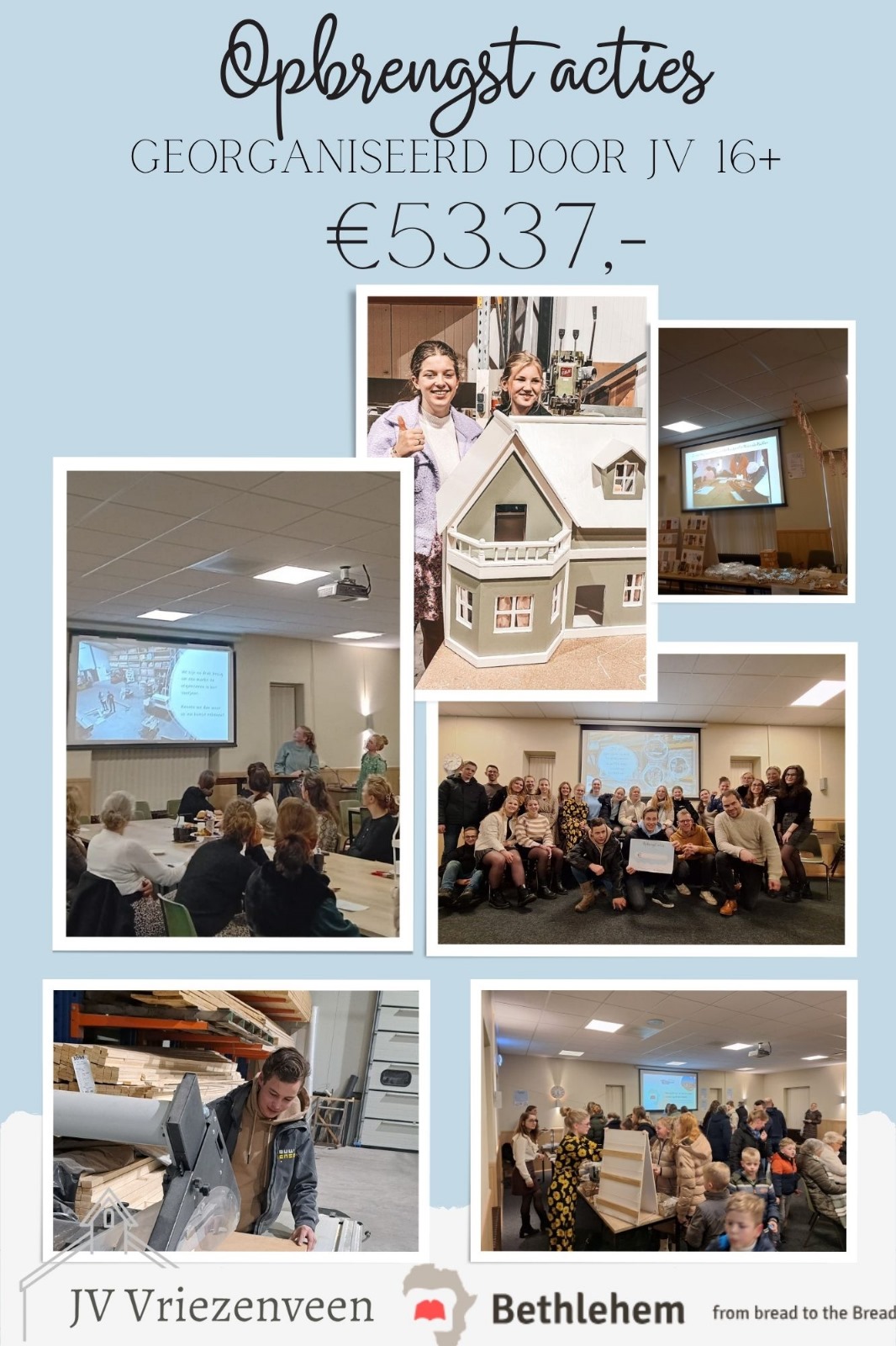 We kijken terug op een goede avond met veel gezelligheid en natuurlijk een mooie opbrengst voor ons doel. We startten met het doel om 15 bedden bij elkaar te sparen voor het Old Age Home van stichting Bethlehem, en dat is gelukt! We gingen als een speer en hierdoor konden we naast de 15 bedden, wat ons startdoel was, een totaalbedrag van €5337,- doneren. Met dit grote bedrag konden extra producten worden aangeschaft die nodig zijn in het Old Age Home maar ook Bijbels worden gekocht om uit te delen aan hen die geen Bijbel in bezit hebben.